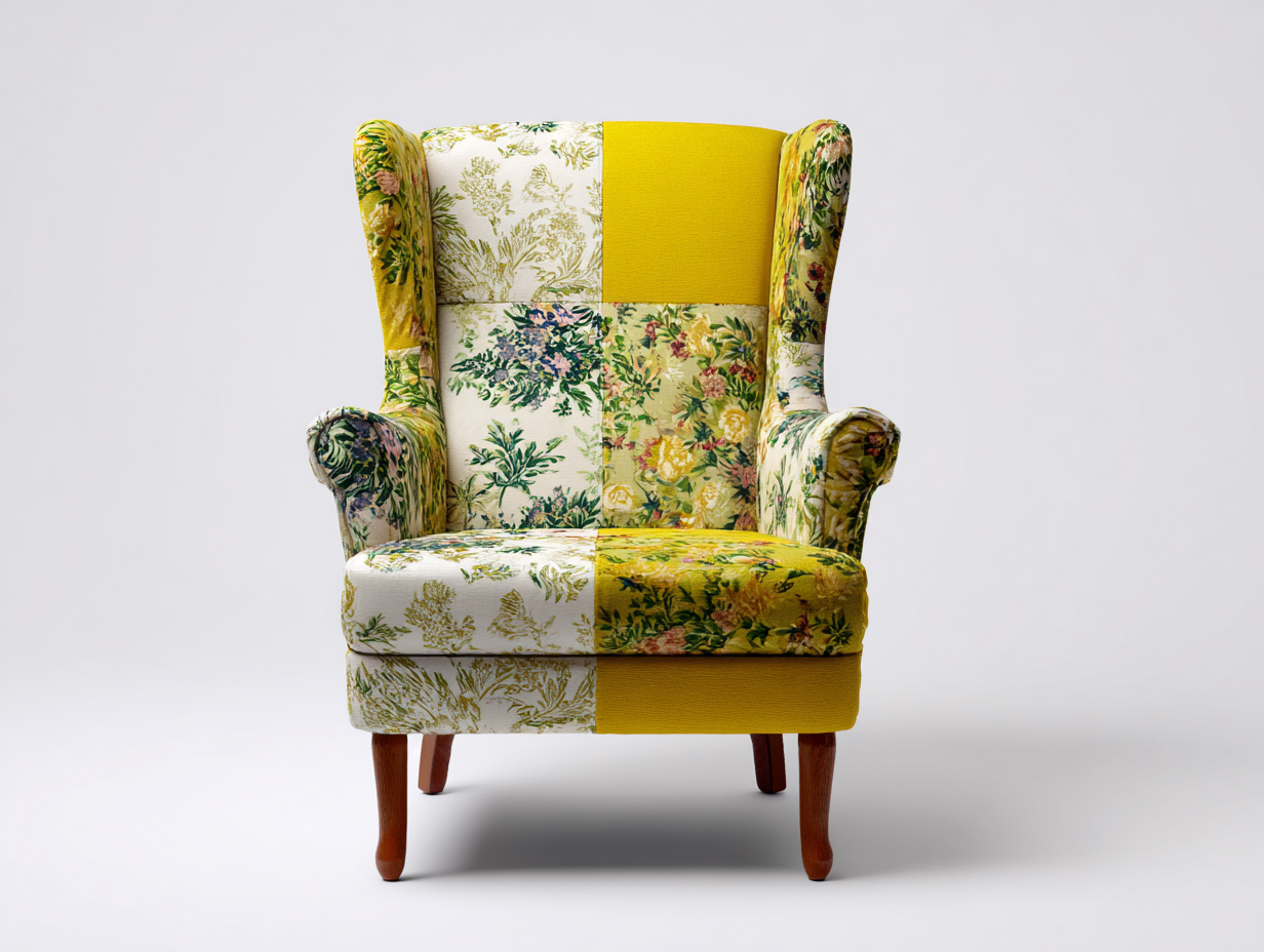 Dieser Stoffsessel ist für Wohnräume konzipiert, in denen Komfort und dekorative Wirkung gleichermaßen gefragt sind. Die hohe Rückenpartie, die gepolsterte Sitzfläche und die geschwungenen Armlehnen schaffen einen bequemen Sitzplatz für Wohnzimmer, Leseecke oder Ruhebereich. Das auffällige Patchwork-Design mit floralen Mustern setzt einen wohnlichen Akzent und passt besonders gut zu klassischen, gemütlichen und individuell eingerichteten Interieurs.